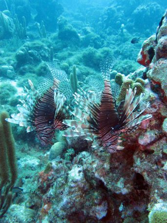 Het was duidelijk dat het koraal hier te lijden heeft gehad, het is minder mooi dan dat we ons herinnerden. Waarschijnlijk is orkaan Thomas uit 2010 hier debet aan, en volgens Juny speelt El Niño ook een rol. Maar er was nog genoeg moois om te zien, het koraal heeft mooie vormen dat aan velden vol paddestoelen doet denken. We hebben veel vis gezien maar op een stuk of vijf flinke lionvissen na die bij een grote berg koraal zaten was er niet echt iets bijzonders bij dat er uitsprong.